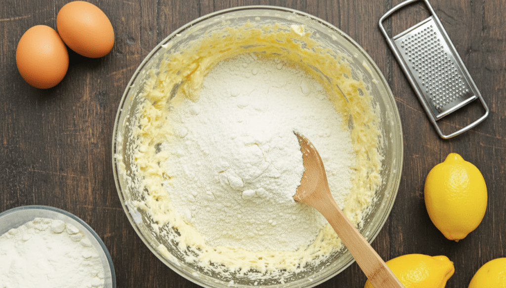 Fold in the flour and baking powder gently.